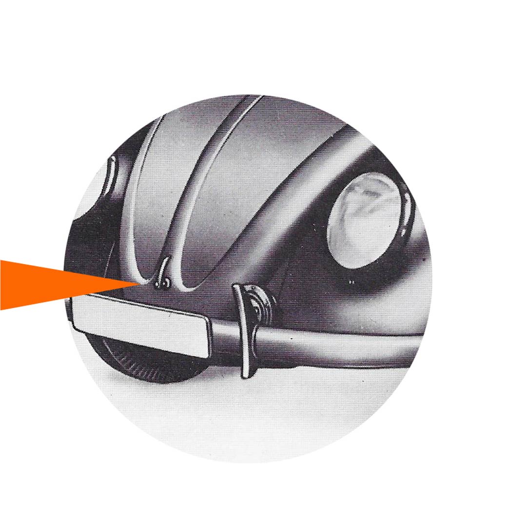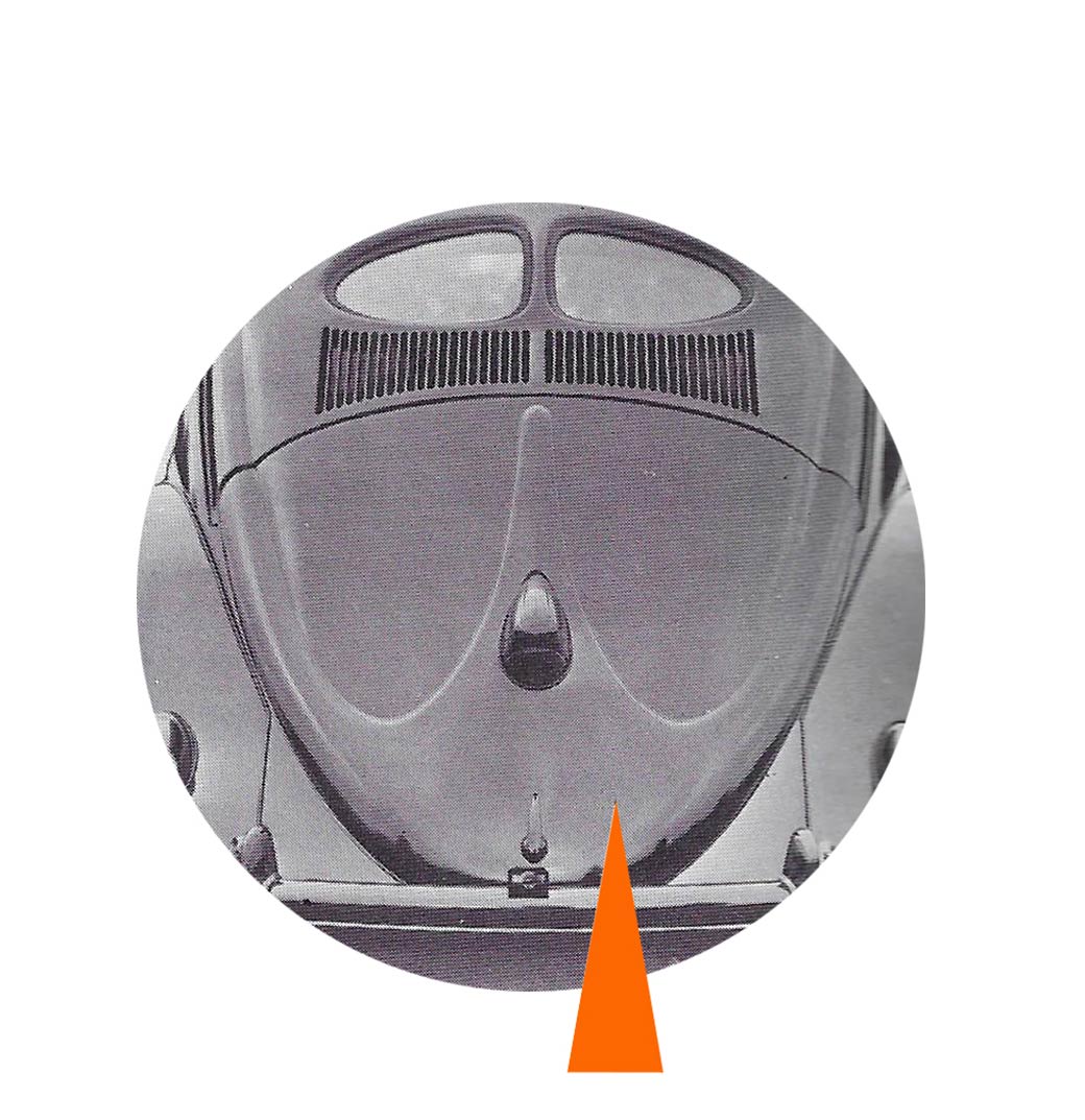 - Les poignées de porte sont en “porte de frigo” jusqu’à 1959. Le capot avant s’ouvre par une poignée en “L”, jusqu’en 1949.