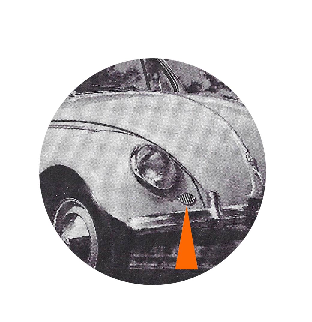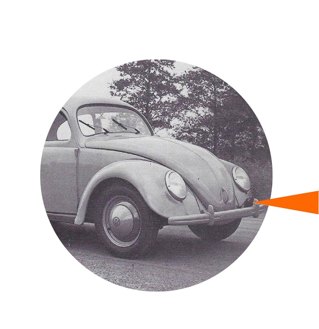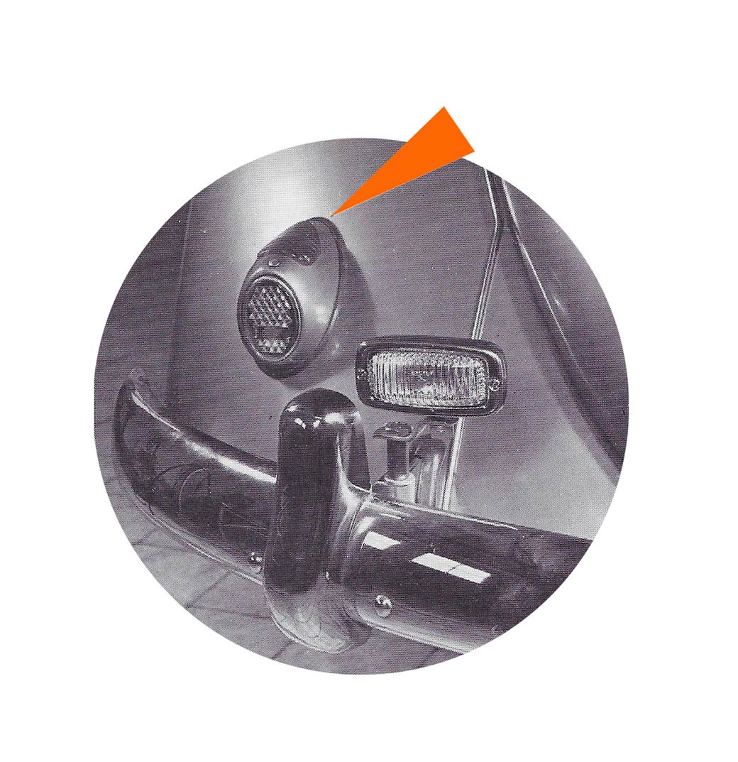 - Sur le modèle standard, le klaxon est laissé apparent alors que sur le modèle deLuxe il est placé sous l’aile gauche sous une grille d’ornement.