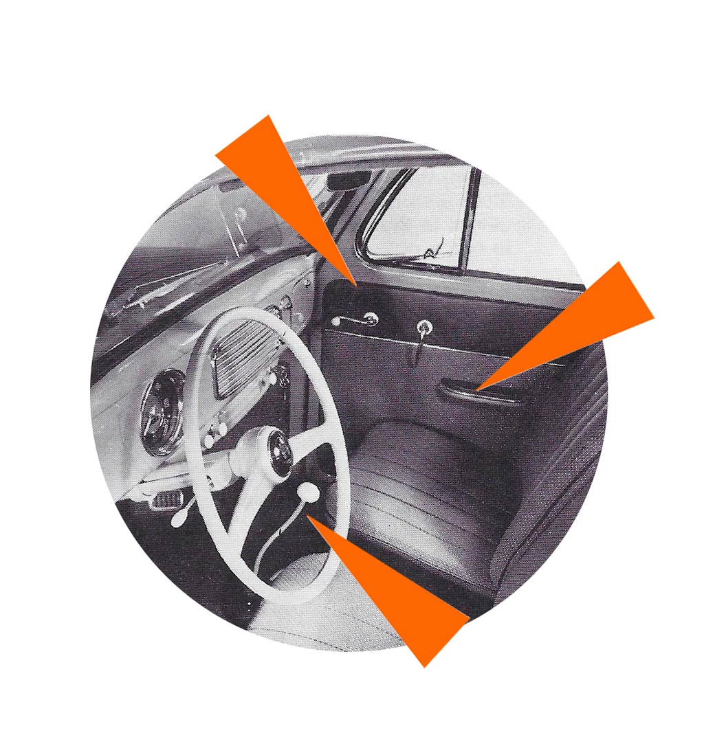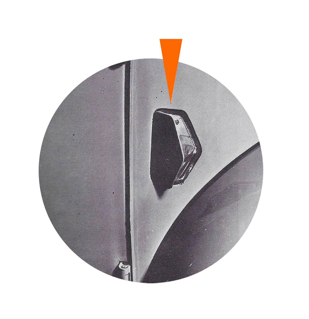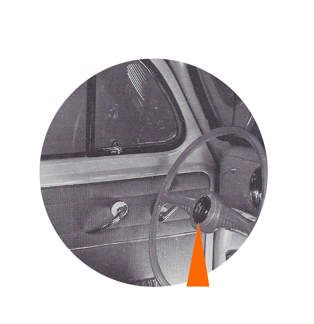 - Le plafonnier au-dessus de la portière de gauche au lieu de surmonter la lunette arrière depuis 1952, reçoit un interrupteur permettant de couper la lumière, même quand les portes sont ouvertes.