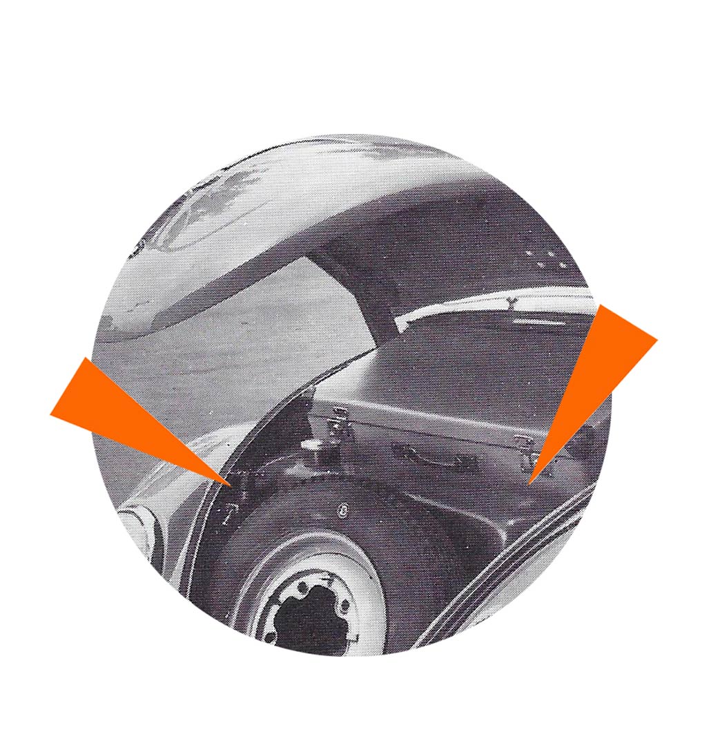 - Les butoirs de pare-chocs sont plus gros, les feux arrière reçoivent des catadiopes et les feux stop sont intégrés sur des vitres en forme de cœur. Précédemment il n’y avait qu’un feux stop intégré à l’éclairage de plaque au centre du capot arrière.