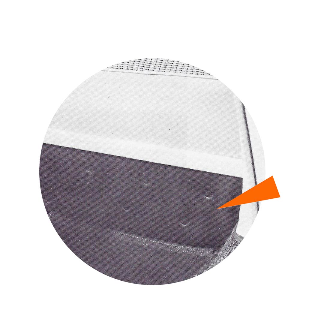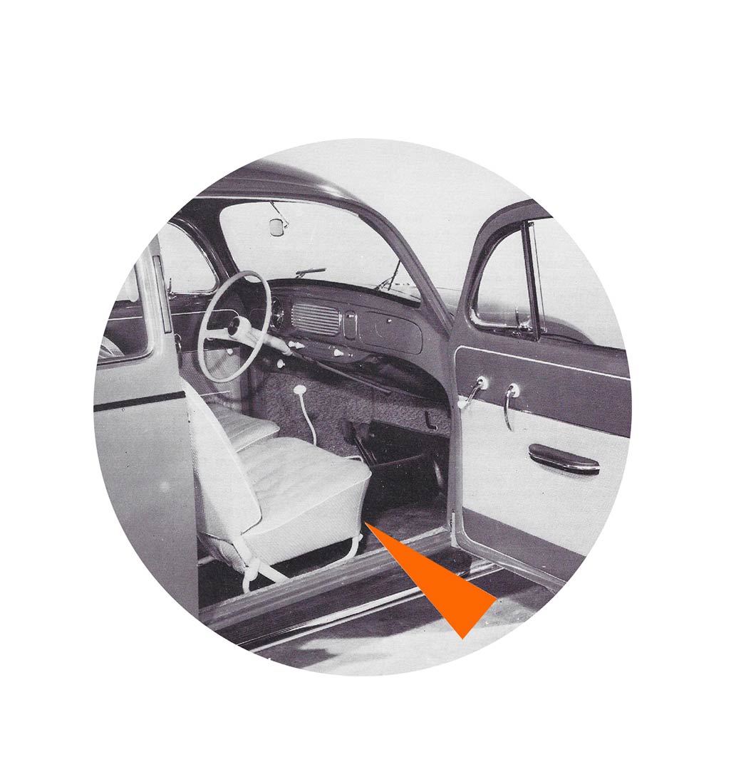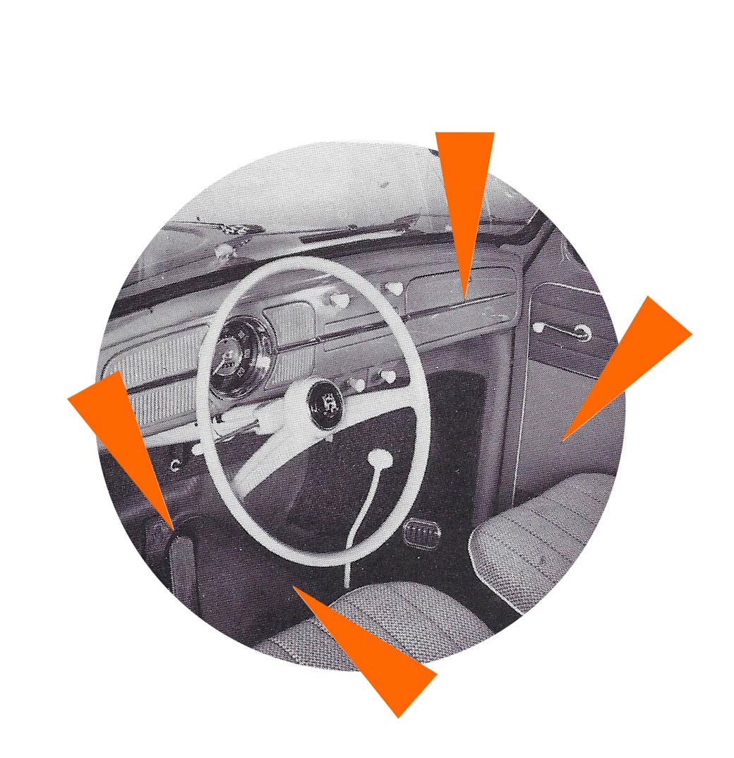 - Une isolant phonique en laine de verre est placé à l’intérieur de l’habitacle contre la paroie du compartiment moteur et sur les arches de roue.