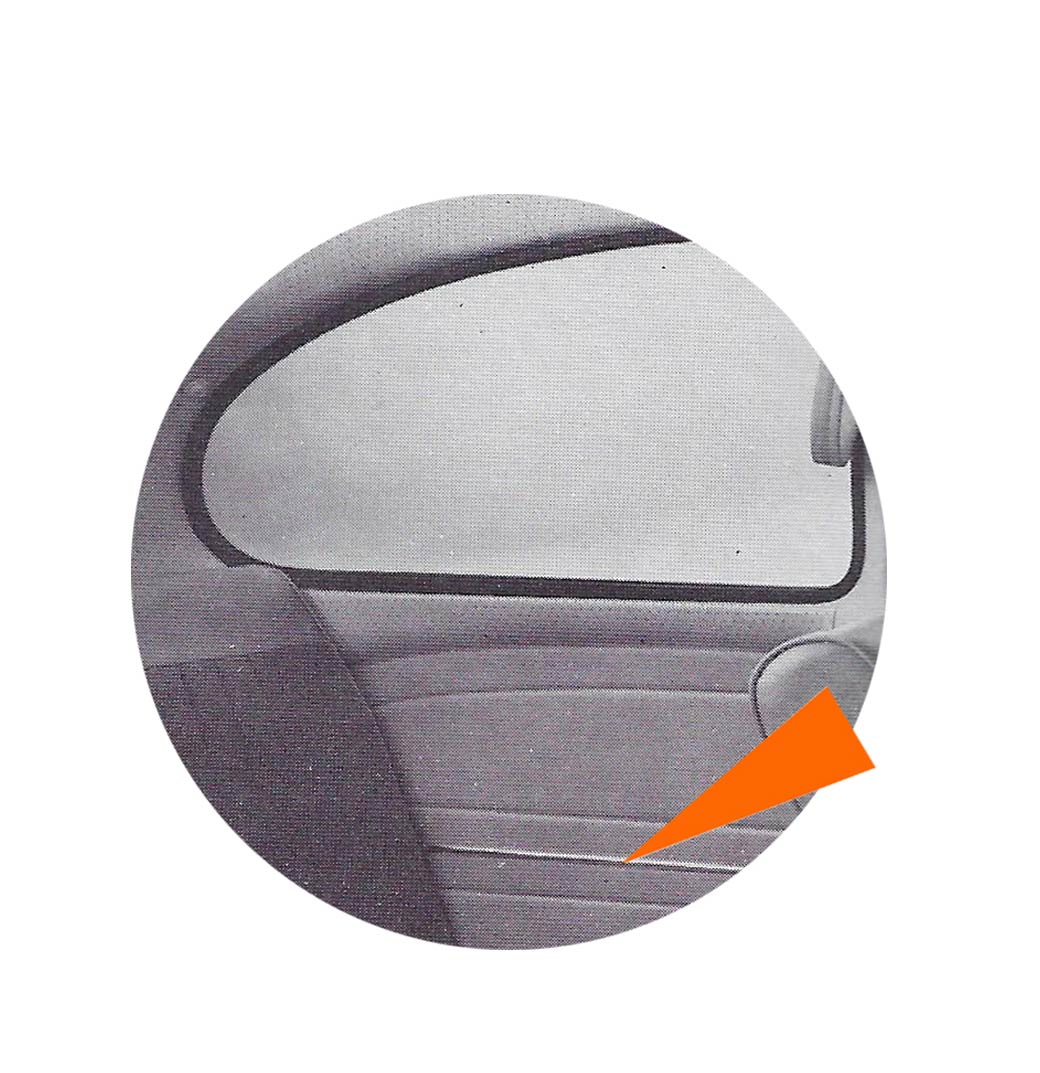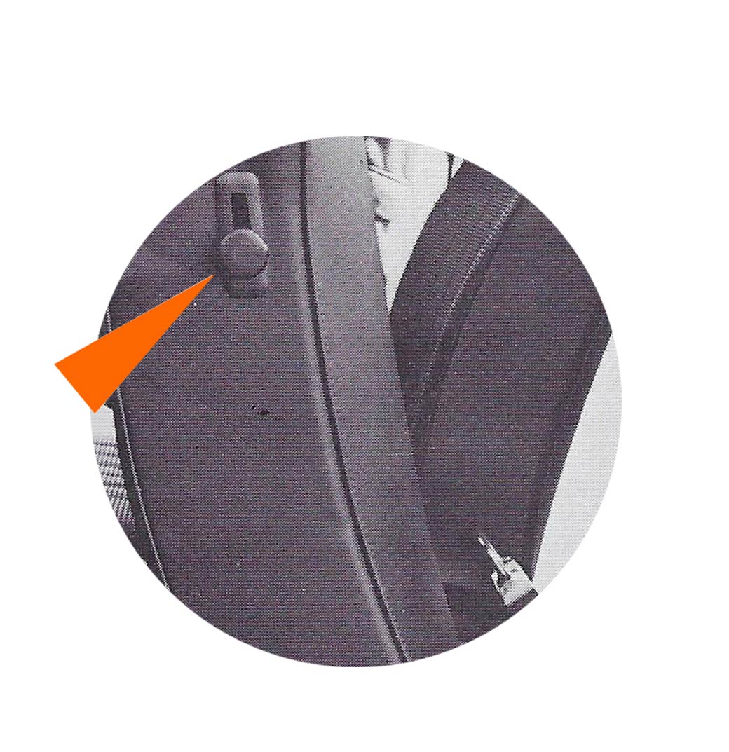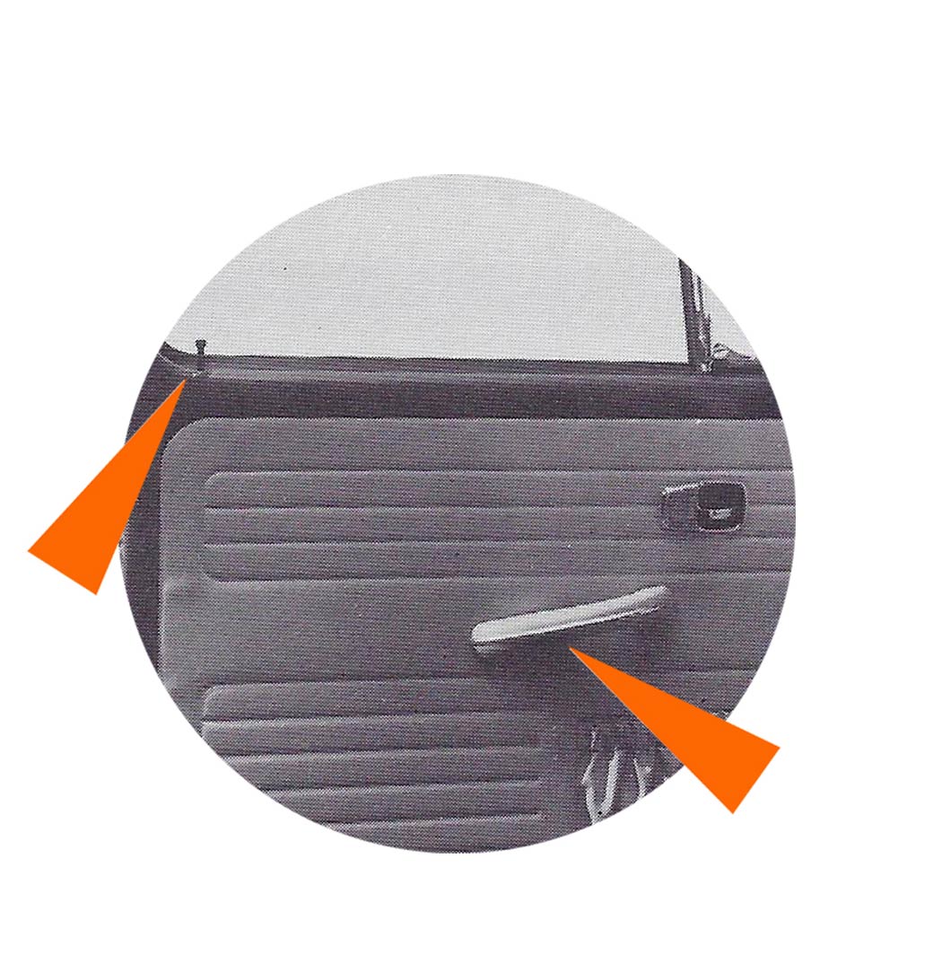 - Un loquet poussoir situé dans le coin arrière de la vitre de porte permet de fermer la portière de l’intérieur.