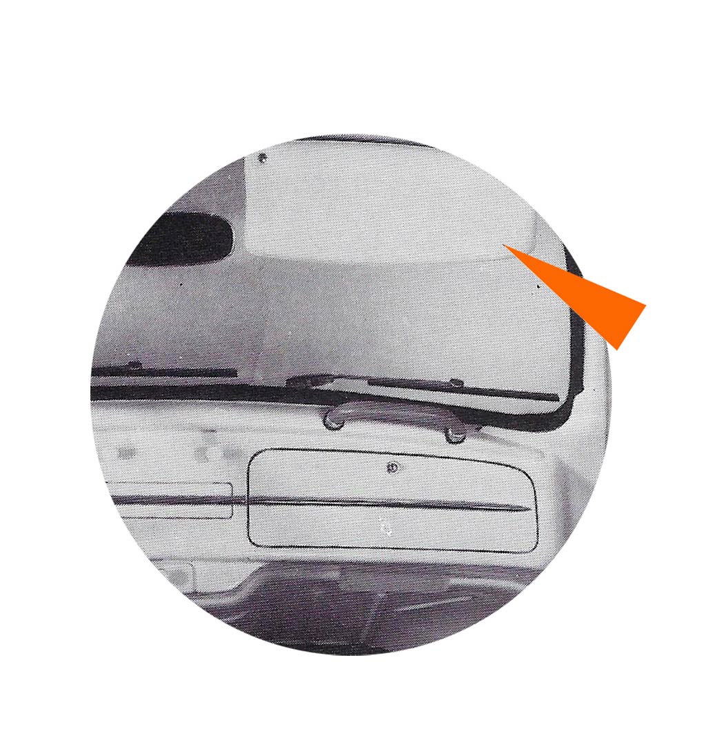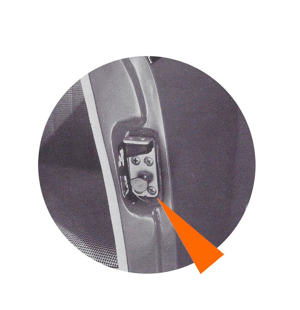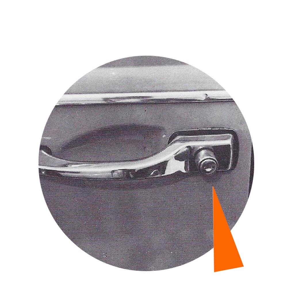 - Un loquet poussoir situé dans le coin arrière de la vitre de porte permet de fermer la portière de l’intérieur.