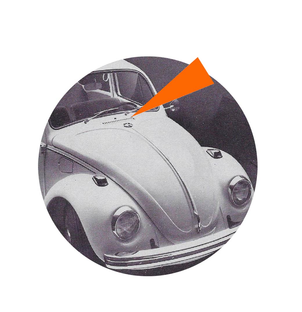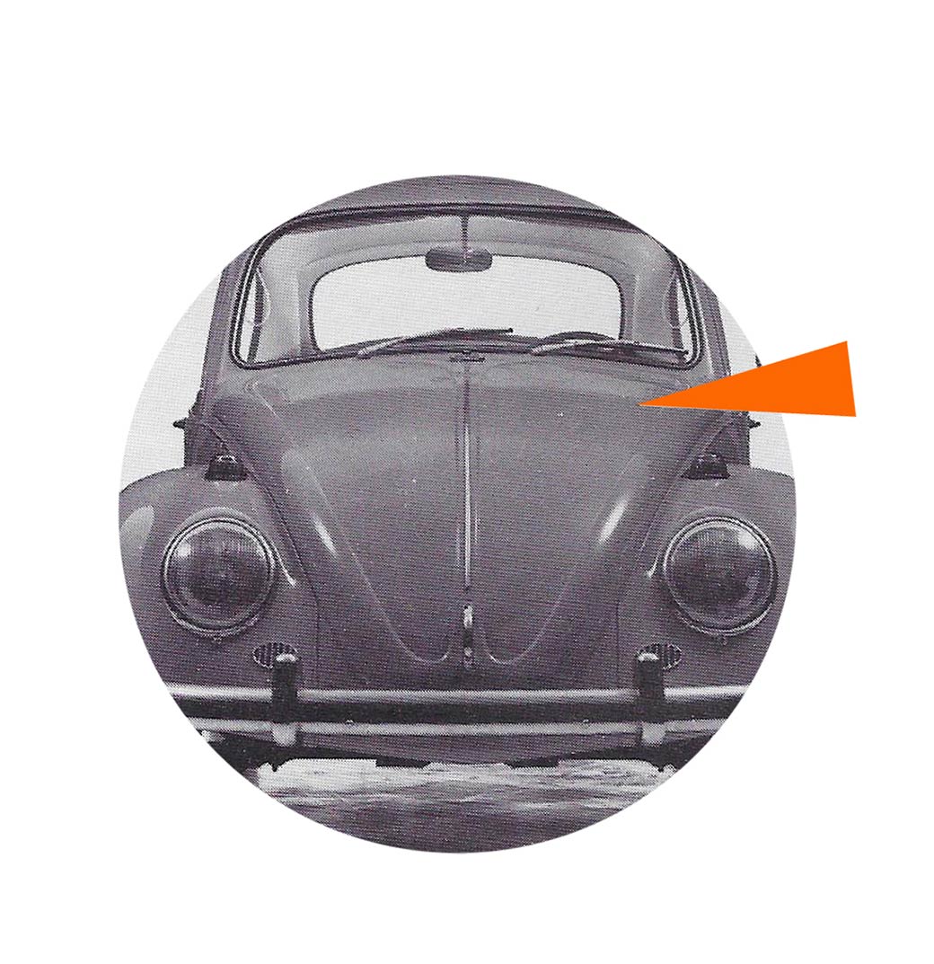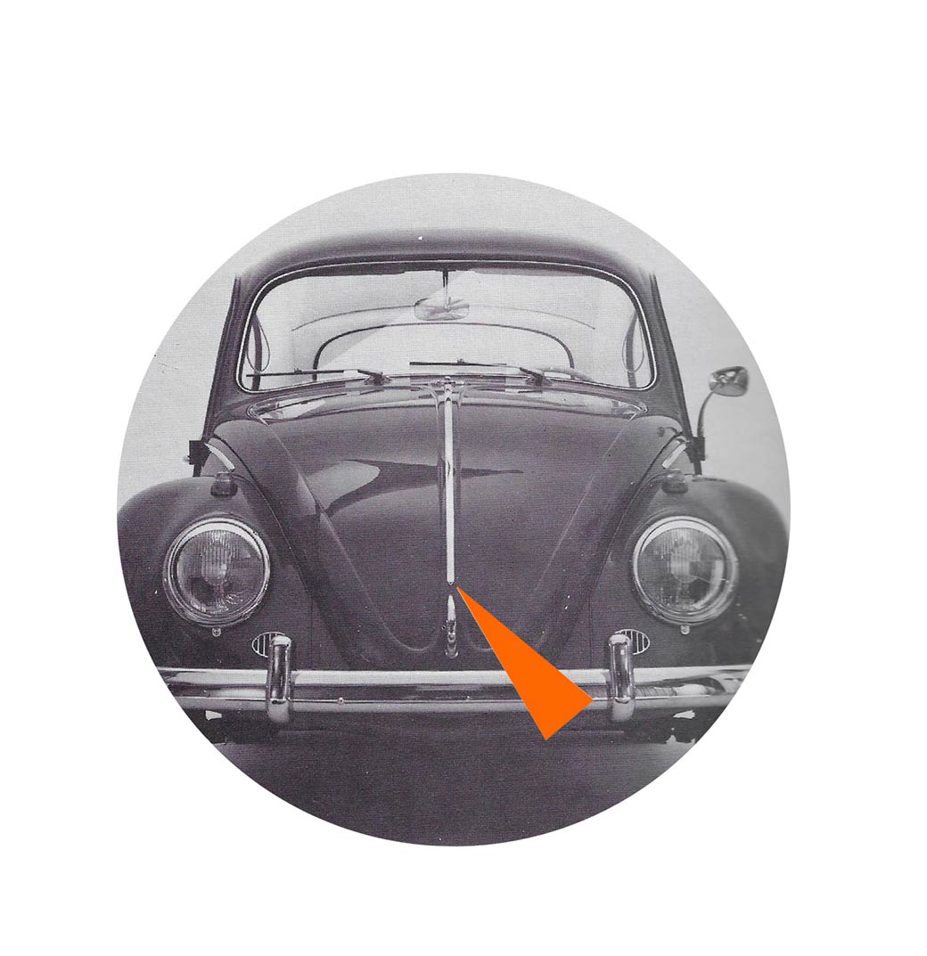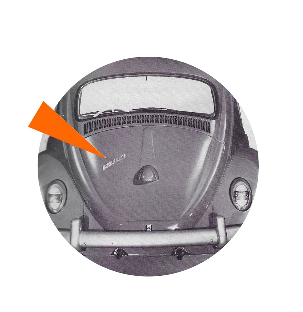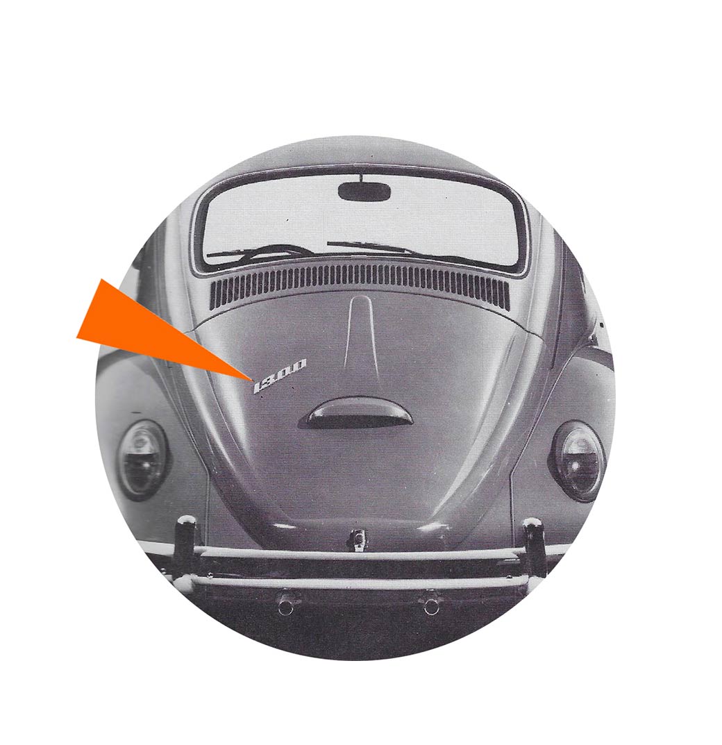 - L’écusson en couleur présentant le château de wolfsburg est retiré de la baguette de capot avant. La moulure du capot est donc rallongée et un nouveau sigle VW est apposé en haut de la moulure.