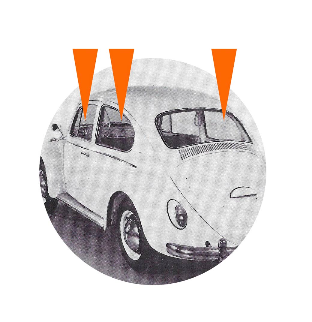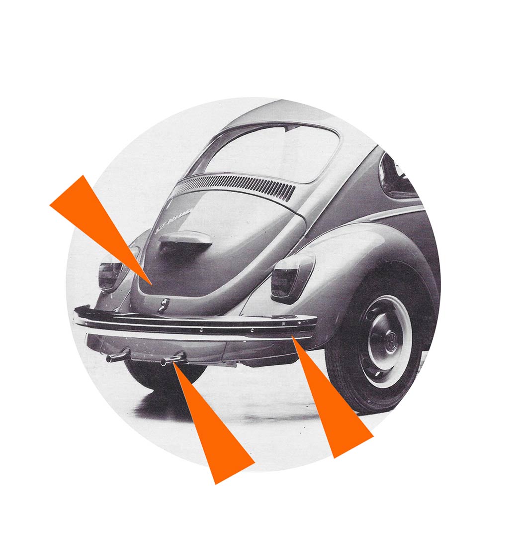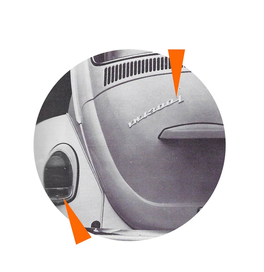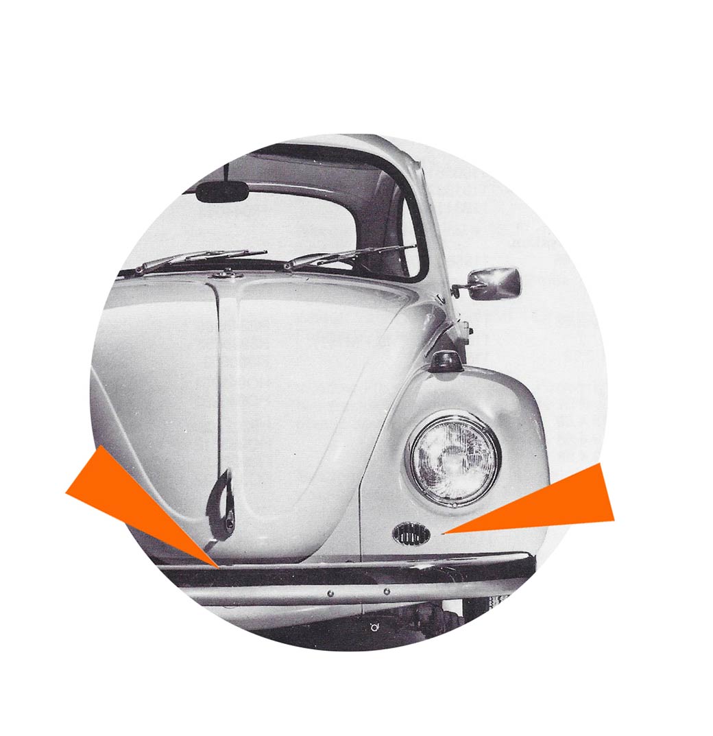 - Les pare-chocs sont rehaussés et renforcés de forme carrée (sauf pour la 1200 jusqu’en 1973).