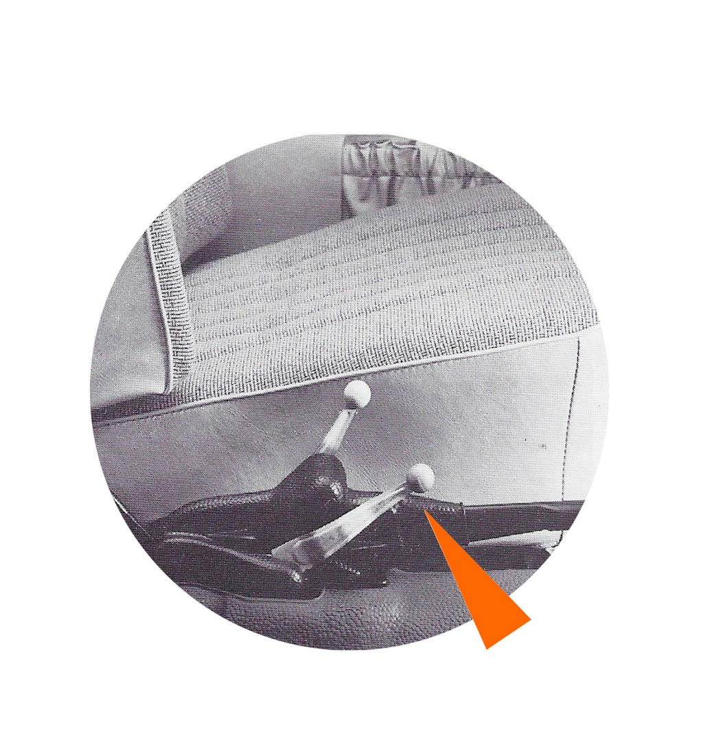 - Des plaques d’isolant phonique sont collées sur le plancher. Une manette de basculement est maintenant montée sur la base des dossiers de siège afin de verrouiller le basculement.