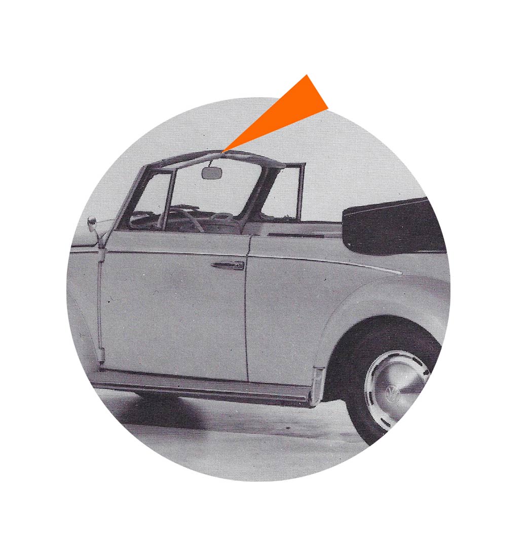 - Le toit découvrable en vinyl est maintenu à la gamme pour les modèles export jusqu’en août 1963 et en août 1967 pour les modèles standards.