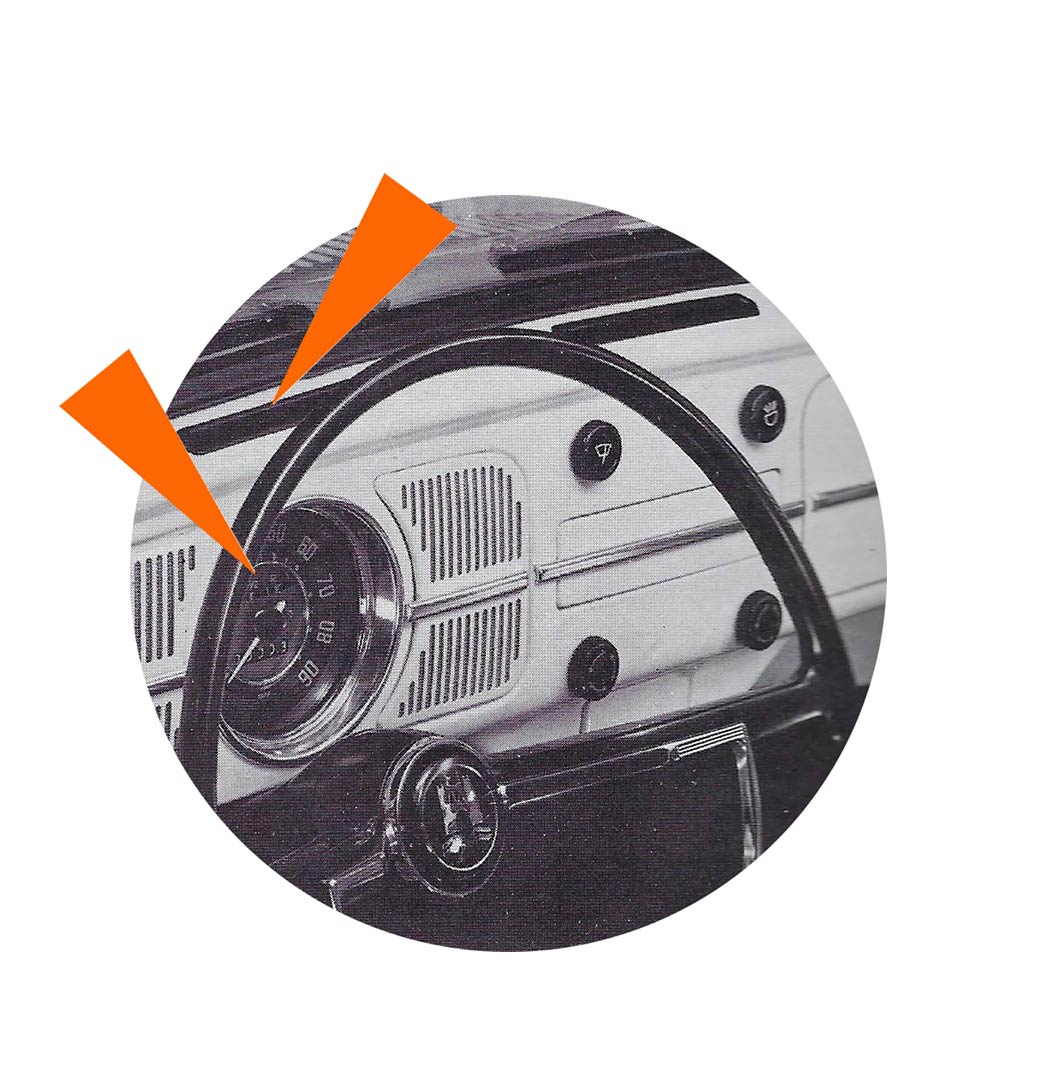 - Pour faciliter le désembuage du pare-brise, des volets permettent de couper le chauffage aux pieds, ainsi une quantité plus importante d’air chaud arrive au pare-brise.