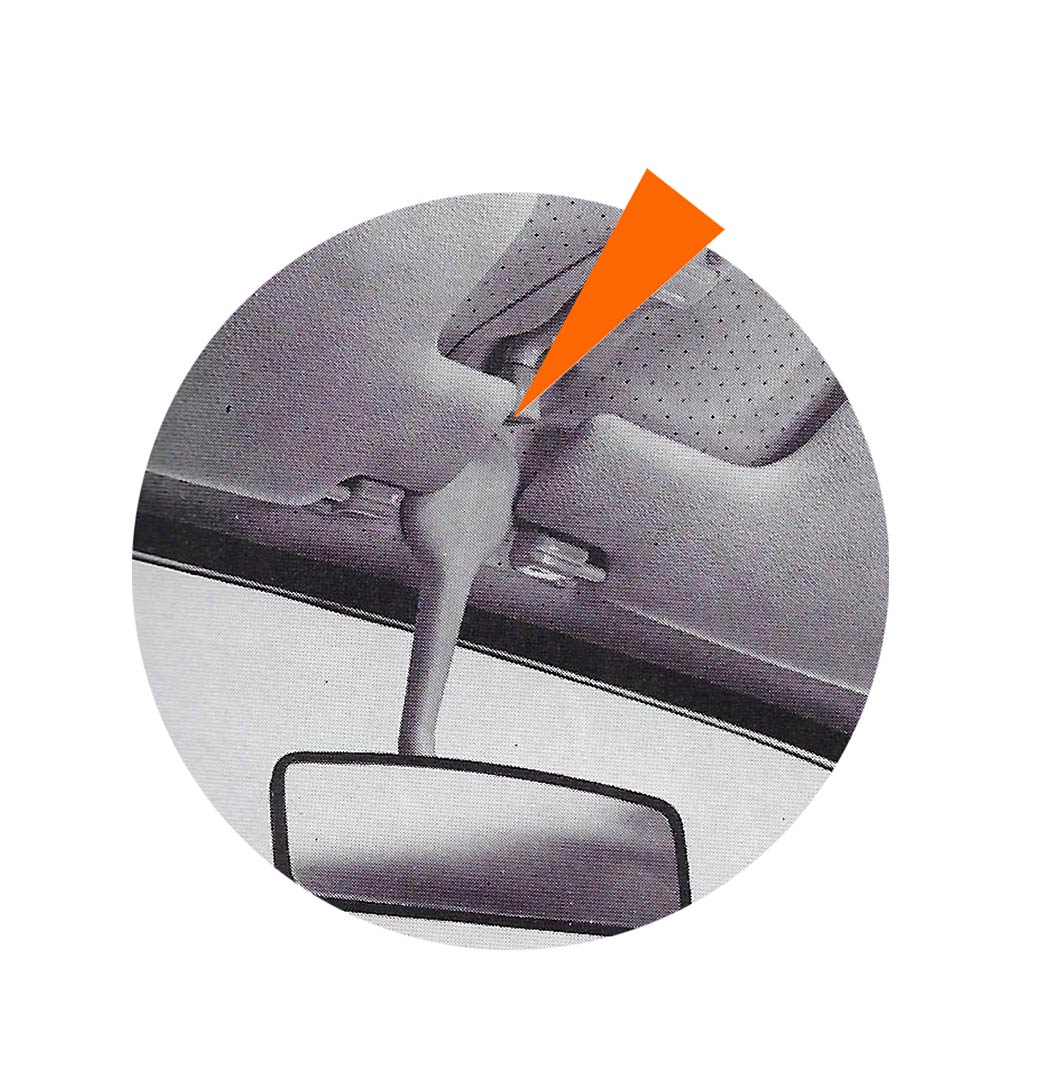 - Les pare-soleil sont fixés sur un pivot qui se visse dans le pavillon d’une part et un clip d’autre part. Cela permet de parer à un soleil venant latéralement sur la voiture.