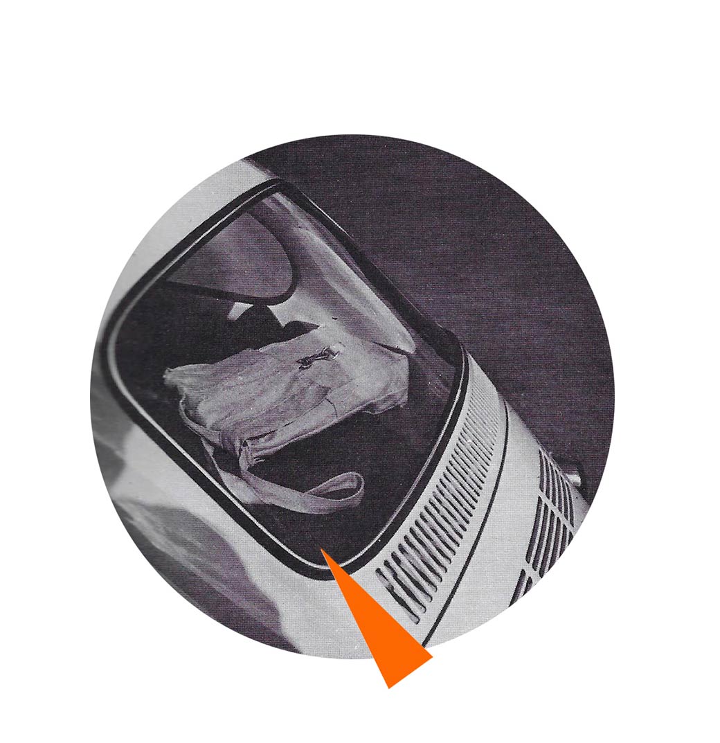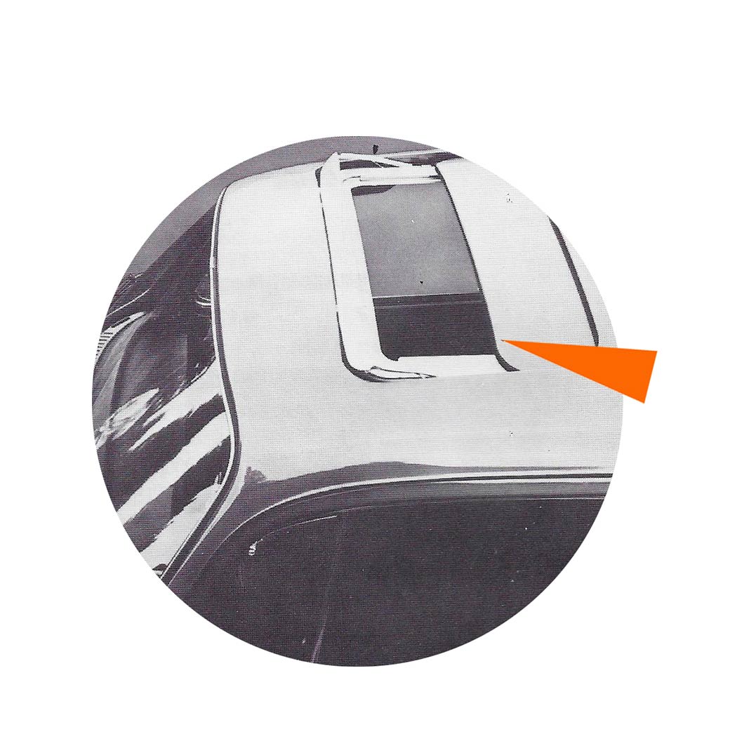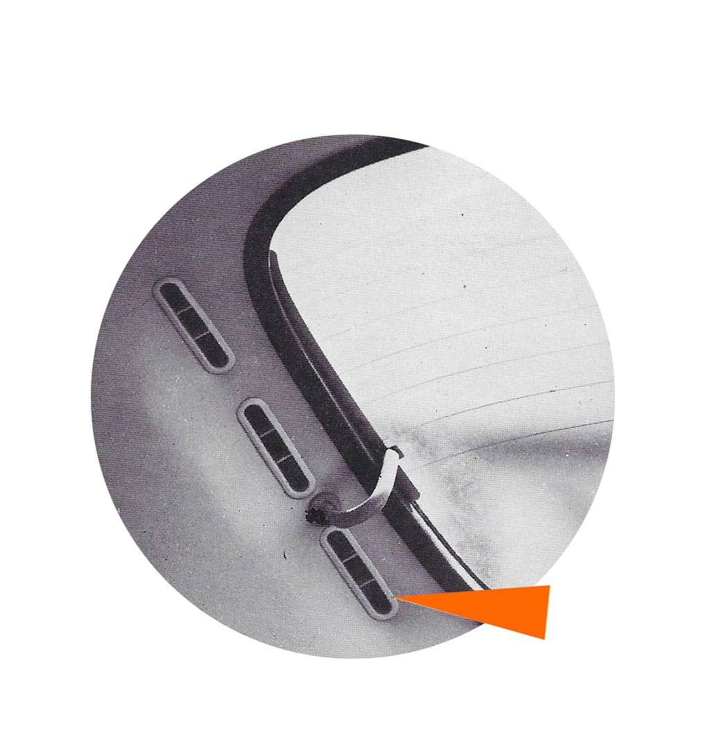 - La caisse est percée à l’arrière des vitres latérales arrière pour recevoir une grille de ventilation en demi-lune et ainsi faciliter le désembuage de la lunette arrière.